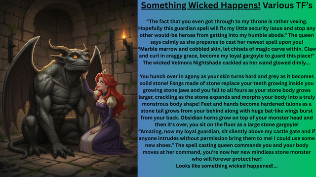 "What is a harpy?" Quentin asked his magical friends. Mere seconds later, he regretted asking the question but by that time it was too late. His friends decided it would be best to show him so he could see for himself. They presented a mirror to him, or rather her, so she could see the harpy she had become.