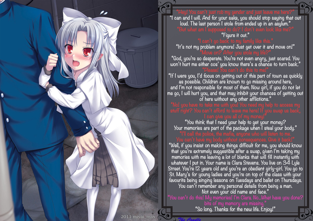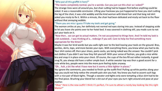Annie wondered why Faith called her Annie. Then she became aware of the changes happening to her. Her distinctive features disappeared as she took on the basic shape of a female mannequin. Anything not needed for her to display clothing was not included.
