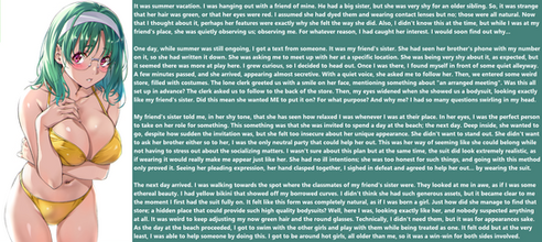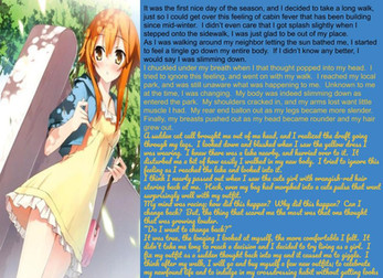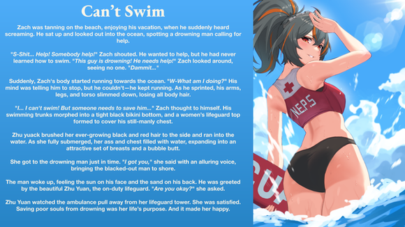 As he removed his skin, it peels off faster and faster. There was a layer of fresh skin underneath it. Sidney thought his new skin looked beautiful and wanted to see more of it. When he reached the chest area, he discovered his new layer of skin was wearing a bikini. This completely bewildered him but it did not stop him.