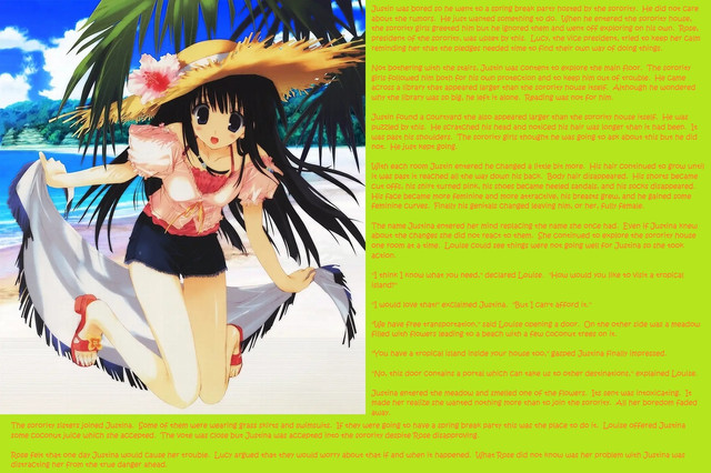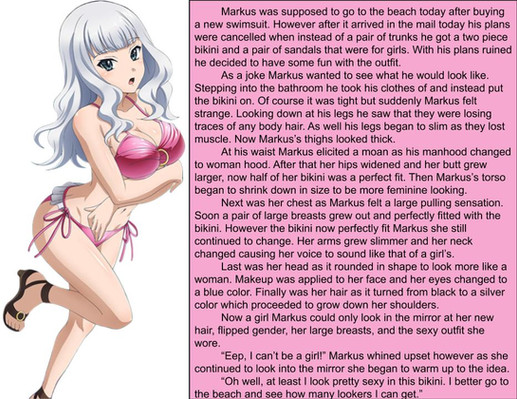 The biggest shock to Sidney came when he pulled off his male genitals. He had no idea he, or she, could do that. Underneath was the rest of her bikini with female genitals underneath that. Finally, the skin on her legs, hands, and feet were removed leaving her completely female. Her skin looked rather pale, but Sidney decided against getting a tan. She had had enough sun for one day.
