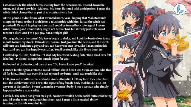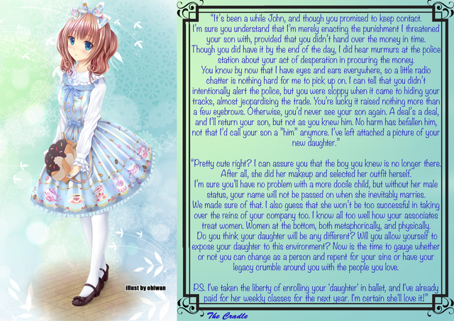 At that point he, or she, realized his clothing no longer fit. She went into one of the shops and bought a fancy Japanese outfit. The shopkeeper called her Zoey, which she accepted as her name without question. The name just sounded right.