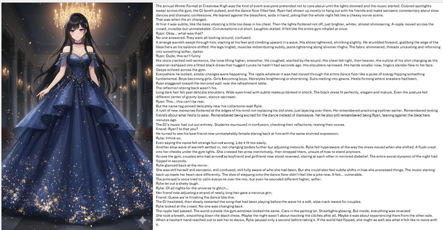 Some of the male players refused because they knew the dance instructions would require feminine movements especially if they got certain songs. Indigo did not mind. He liked a challenge. One of those more feminine songs started to play. Indigo was glad he had been practicing and showed "her" moves to the best of his ability.