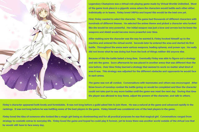 The game offered different types of music, different eras of music, and different skill levels. Indigo liked interacting with other players both through competition and through teamwork. Another event was about to take place where the players would compete against one another. He quickly queued up for the event and spent time practicing his moves.