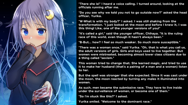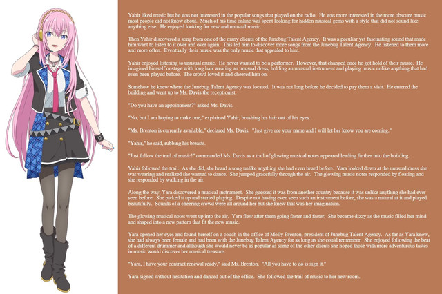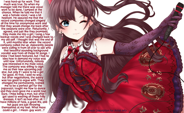 He sang some songs specifically made for high voices. As he did, more changes happened. His pink hair grew all the way down his back, his body became female, and she even grew breasts. Stacy was good at singing but she did not think she was quite good enough. That was why she was taking voice lessons.
