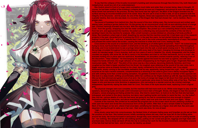 Other changes were happening too. His hair changed from yellow to pink, his eyes became a deep purple, and his body slimmed down and developed some feminine curves. His Adam's apple disappeared. After that he was no longer able to sing quite as low but the high notes more than made up for it. He sounded kind of like he did before his voice changed.