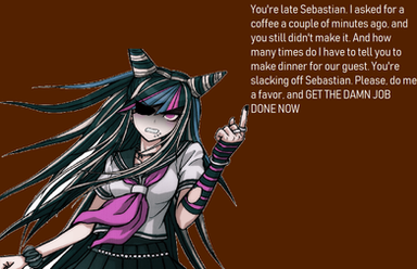 Her new best friend was a girl named Sonia Nevermind (she insisted on using both names) who was the Ultimate Princess. Little did Chiaki know Sonia was actually Tanya who had also entered the Witness Protection Program. Sonia was going to make sure Chiaki was kept safe, even at the cost of her own life if need be.