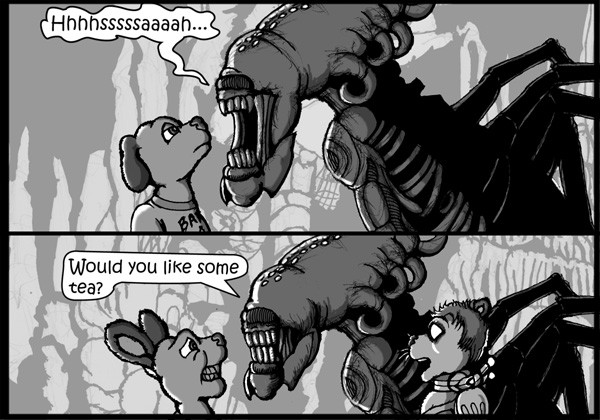'It's mine!' Alien protests. 'Get your own!' D:<