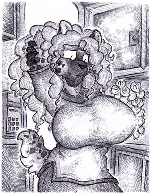 Frowning at the hyena's single word response, Amenii's ears folded back as she looked over her lover once more. Frame rigid as she leaned against the door way the bunny could tell her lover was trying to keep her temper in check. Drawing in a breath to help her build up her courage, Amenii undid the apron and pulled it up over her head before letting it fall and moving to embrace the predator standing three times her size.