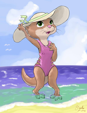 But personality was of course the most important thing, and one side to her is that she's a respectable working class otter-lady and maintains modesty by wearing a snug-fitting one-piece white bathing costume that covers all but her long lithe limbs)