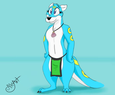 She was designed to be a beautiful and sexy mate for the handsome and muscular Hydrex the Otter (Leroy's nickname, back when he was originally a Sonic fan-character, because his strength leads him to be described by friends as a hydroelectric powerhouse)