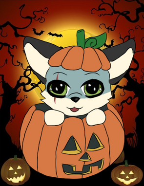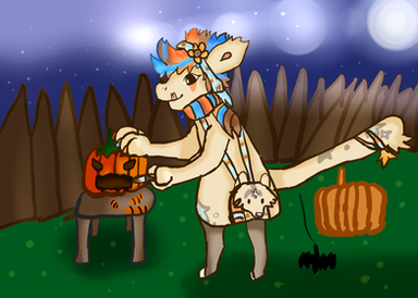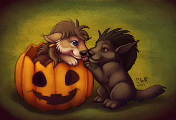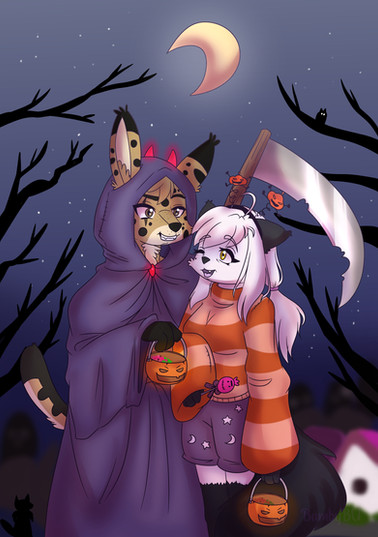 #bunny #chibi #cute #eyes #furry #green #hyena #lesbian #prey #rabbit #size #anthro #anthropomorphic #difference #halloween #predator #pumpkin #lesbiancouple