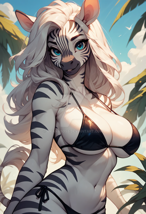 #beach #anthro #anthropomorphic #biki #boobs #breasts #curvy #fallout #hips #lars #pony #radioactive #swimsuit #tatoo #unhappy #vegas #zebra #new