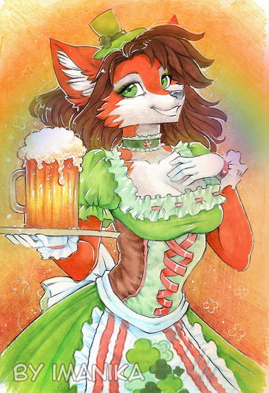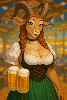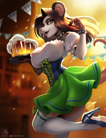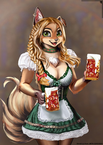 #anthro #beer #breasts #color #commission #cute #digital #female #furry #garden #german #hyena #lesbian #painting #anthropomorphic