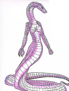 trying out some new styles and seeing which ones i like. Toying with the idea that the older a Naga gets the more snake like she becomes. She seems a bit scared, that or apprehensive. I suspect this is because i was listening in to a D&D match while drawing this.EnjoyΒ