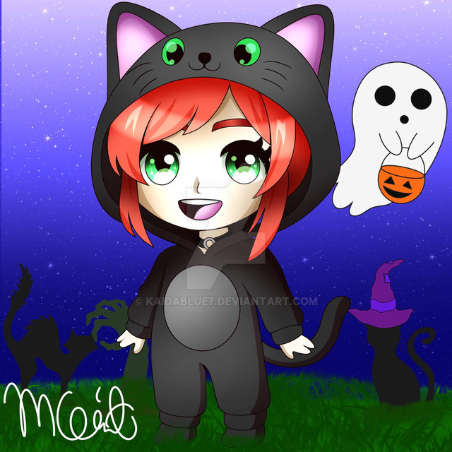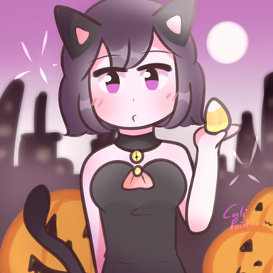 Candy Corn Kitty says "Have a good Fright Night."lil something for Halloween ^^