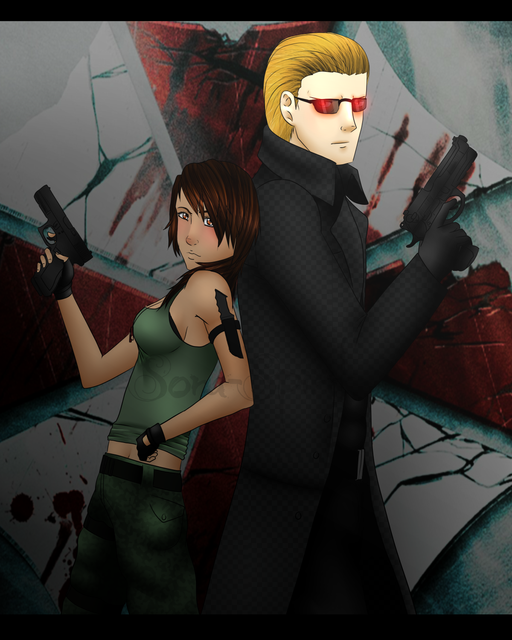 Basically my other Wesker drawing with Hunk and Ada added. I didn't spend as much time on coloring them as I did with Wesker, but I guess it came out ok.All characters belong to Capcom.