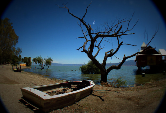 In this photo there is the Guachimontones' archeological zone, with Teuchitlán town and the Vega water reservoir in the background. This is located in Jalisco, Mexico.Related content