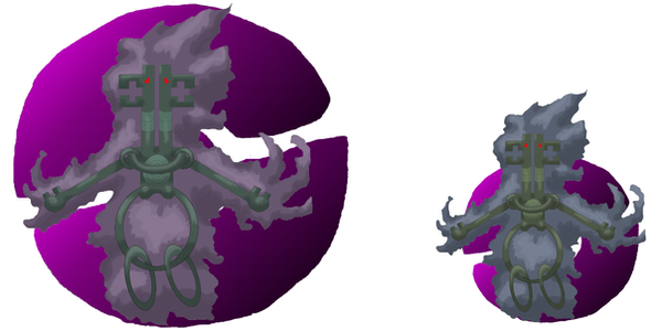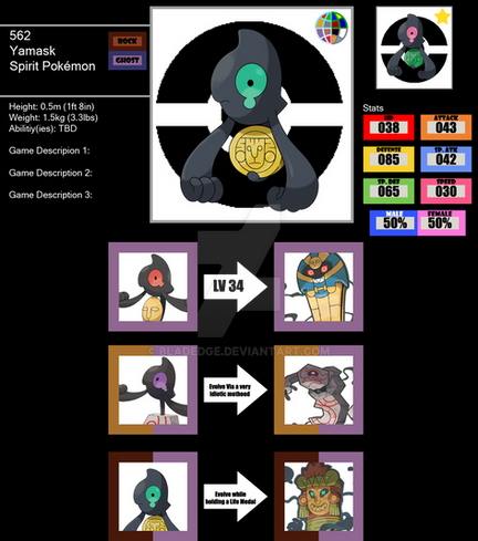 Mashi, a good and evil Spirit mask pokemon. Both sides of the mask are in constant prayer, trying to win the sprit's body for themself. Dependance on how a trainer helps and trains this pokemon ultimatley decides which side of the mask wins.
