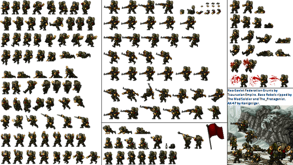 Just a random sprite mix of sprites and pixel art i've been doing on and off over the past months. The majority of it is metal slug style inspired stuff, as i kinda had an on and off project in mind, though it never really got going. In addition there's there's a few other random bits in there as well. I don't really plan on using this stuff for much, although i may reuse the metal sluggish stuff for reference for later projects.Enjoy