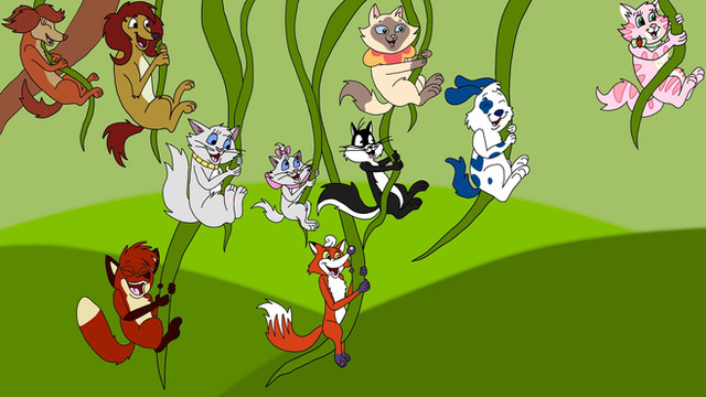 I can't believe I was able to actually get that idea edited. xD Eleven disney animals having fun in the woods. : DThere's Big Mama, Oliver, Toulouse, Berlioz, Dodger, Copper, Figaro, Tod, Marie, Scamp and one dalmatian puppy (Lucky?)