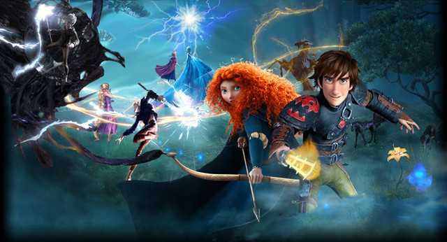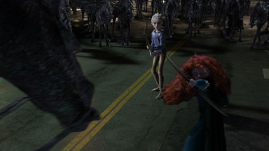 Merida: - warrior screech - pulls out bow & arrow