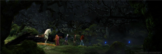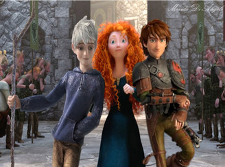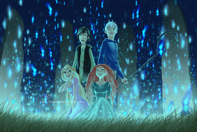 Hieno kuva jälleen kerran. Kun oot noita hahmoja tuonne iskenyt, oot hyvin huomioinut missä nuo taustan valot menee - Hiccup on varjoissa ja Merida taas enemmän valossa, ihan niin kuin kuvassa nuo valoraidatkin menee. ^^ Tähkäpään lattiaa pitkin menevät hiukset pistää ehkä jonkin verran silmään, kun katsoo tuossa lattiaa myöten menevää valoraitaa ja varjoja. Mutta sehän on ihan pikkuvika, höhö. : D Hyvää työtä!