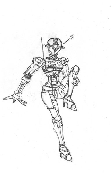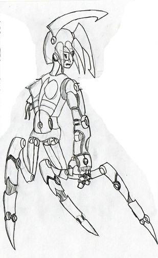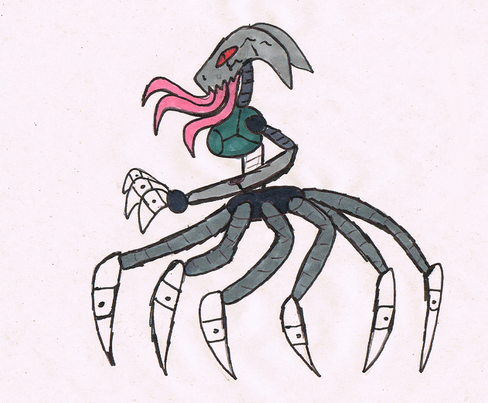 This boss bot controls spider drones that are... pretty much giant dog sized metal spiders... she and the spider has the ability to web cocoon a normal humanoid drone and upgrade it(code541: Two fem bots in a row! YEAH!)