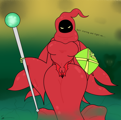 Is she human? Or at least solid under the robes? Or is she's slime 100%?