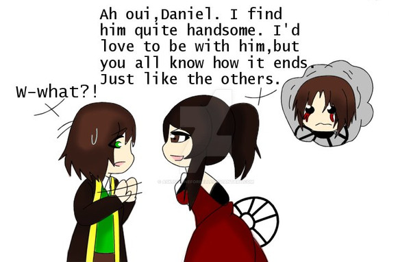 Maria: Sawa?*sitting down and the only thing not hidden by the sweater was her green eyes*