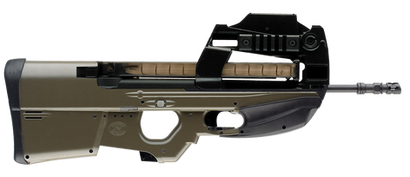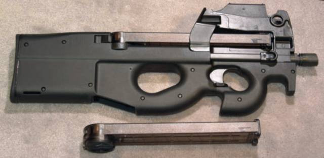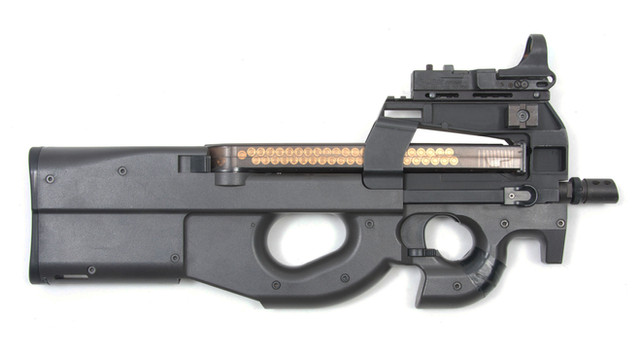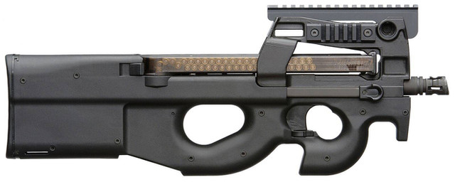 Link: en.wikipedia.org/wiki/FN_P90The FN P90, also known as the FN Project 1990 PDWS, is a compact 5.7×28mm personal defense weapon designed and manufactured by FN Herstal in Belgium.[10] Created in response to NATO requests for a replacement for 9×19mm Parabellum firearms, the P90 was designed as a compact but powerful firearm for vehicle crews, operators of crew-served weapons, support personnel, special forces, and counter-terrorist groups.
