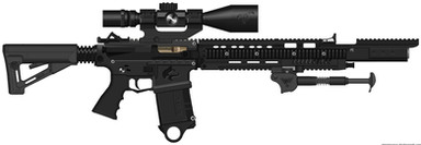 Intrepid RAS-12 / AR-12 semi-automatic shotgun consist of a newly developed AR-12 upper, mounted onto any AR-10 DPMS type lower receiver. AR-12 upper receiver is complete with 18.1” barrel, gas operated action with short stroke piston, proprietary bolt group and a new return spring. Ammunition is fed from modified 20-round .308 cal PMag magazines that hold 5 rounds of RAS-12 shotgun shells in a single stack.