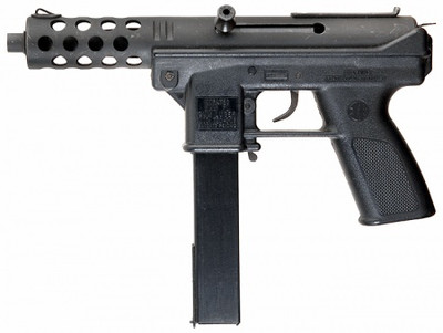 Link: en.wikipedia.org/wiki/TEC-9The Intratec TEC-9, TEC-DC9, KG-99 and AB-10 are a blowback-operated line of semi-automatic pistols. They were developed by Intratec, an American subsidiary of the Swedish firearms manufacturer Interdynamic AB. Introduced in 1984, the TEC-9 was made of inexpensive molded polymers and a mixture of stamped and milled steel parts. The simple design of the gun made it easy to repair and modify. The TEC-9 developed a negative reputation for its association with organized crime, street gangs and mass shootings in the 1990s. Most notably it was used during the 101 California Street shooting and the Columbine High School massacre. However, it was a commercial success, with over 250,000 being sold.