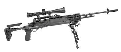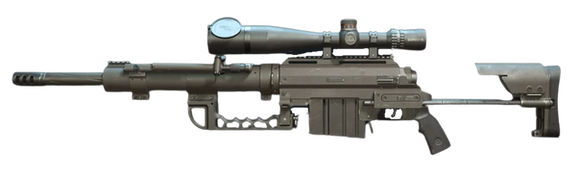 The THOR M408 long range sniper rifle is a manually operated, bolt action rifle. It employs traditional rotary bolt with dual frontal locking lugs and fluted body. The massive, extreme duty steel receiver offers strength and accuracy along with a quick-detachable barrel system which facilitates compact storage, simplified maintenance and simple replacement of worn barrels. The barrel is typically fitted with highly effective muzzle brake, which can be easily removed via standard threads and, if required (and permitted by local laws), quickly replaced by specially designed sound moderator (silencer). This rifle is fed using detachable box magazines with 7-round capacity. A fully adjustable buttstock is made of aluminum with steel reinforced guide rods, and the rifle is fitted with free-floating tubular forend (barrel jacket), which carries an adjustable folding bipod. An adjustable collapsible monopod is located under the buttstock. To facilitate easier transportation and maneuvers, the rifle is fitted with a high strength polymer rotating carrying handle, located near the center of mass. When not needed, this handle is rotated down and locked, as not to interfere with handling of the gun. As manufactured, The THOR M408 rifle has no iron sights. Instead, it sports a MIL-STD Picatinny type rail on the receiver, which could accept any suitable scope in appropriate mount, such as the Nightforce 5.5-22×56, which is recommended by the manufacturer.