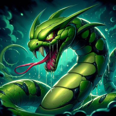 - Bites down with ground-infused fangs, causing tremors and damage.