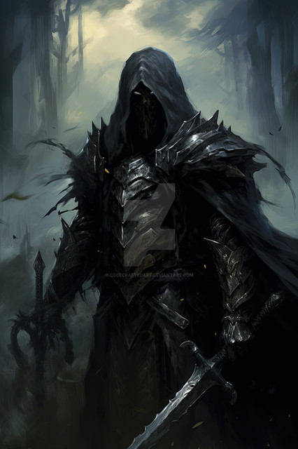 Xander Obsidian was the embodiment of darkness, a living enigma in his black armor and hooded cloak, leaving only a trail of legends and shadows in his wake.