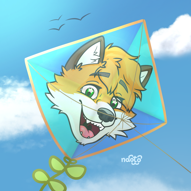 #blue #clouds #cub #field #flying #furry #grass #grassy #kid #kite #playing #running #skipping #sky #soaring #wolf