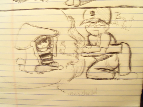 This is a rough concept for my dA ID. I'll be standing on a gear. Fonts will be letterpressed. I'll probably reduce the close up image. I, the character, will be refined. Lazy, 'I don't care eyes.' Username will be higher up, or put onto the left side. I'll have skill meters with the materials I use. About me, yada yada.Fonts I'm going to use is probably Anime Ace, JUICE bold, Mari&David, Maagkramp. Something along those lines.