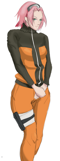 Crop from the original drawn for me: Clothes SwapHaruno Sakura ( 春野サクラ ) as Uzumaki Naruto ( うずまきナルト ) --> NaruSaku ナルサク