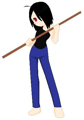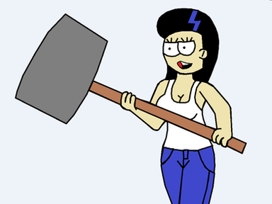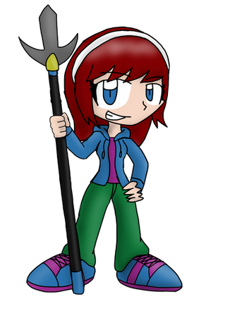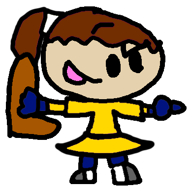 Her character design was meant to somewhat resemble Rinoa from Final Fantasy 8, what with the black hair and blue clothes. Rinoa was the first RPG character I renamed Sora, and I decided to incorporate that into her design. Her music note charm necklace was inspired by Banjo-Kazooie, and her hammer was inspired by Ice Climber.