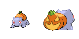 I made a couple sprites of Bulbasaur with a pumpkin back in October just to be festive. They're based on some of the ghost type Bulbasaur concepts floating around on the internet, but more specifically based on the two linked below.Inspiration