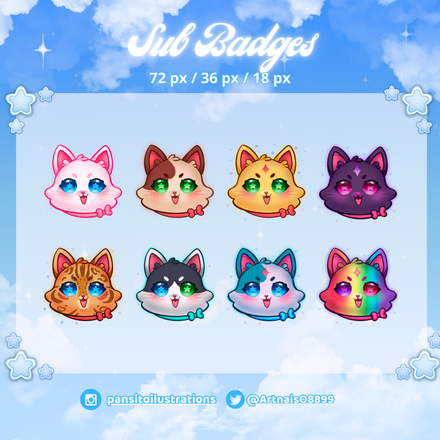 Rainbow rabbit BadgesThese badges will add a cute element to your Twitch stream! Can be used as sub-badges, bit badges, and emoticons..... And whatever suits your streaming needs.