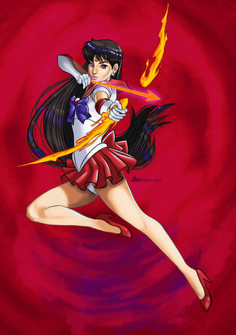 Finally completed Sailor Mars! I know I know...her shoulder is mongo big, but by the time I noticed, I was finishing shading her skin. I need to work on such issues BEFORE coloring and shading, but alas. I may tweak on her a little more later on (I still have the event file saved off), but for now I'm pretty happy with how she turned out despite the flaws. The flame looks awesome in my opinion so yay! Good on me for making flames!Related content