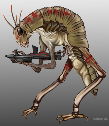 Mechanically adept intelligent insects from Colla IV. The reference pictures I had didn't seem 'buggy' enough to me, so I 'bugged' this one up a bit.Related content