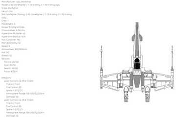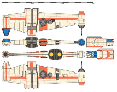 Just very basic wire-frame schematics of the fighters used by the Rebel Alliance. Starting on the top left and going clockwise, we have the A-Wing, the B-Wing, the Y-Wing and the X-Wing. I modified them so that they are now in correct proportion with each-other. 35 pixels count as 1 metre, meaning that the size of each ship is now accurate.Related content