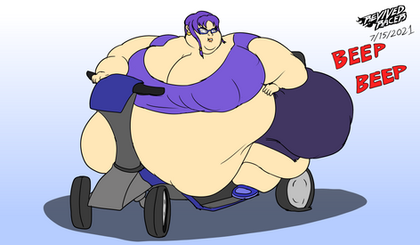 I wish I could ride with her but there's no room. I'd have to climb her mountain of back fat