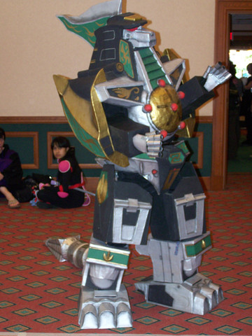 Yeah, the proportions are a bit off in places, but it had to be done so it could be worn by me. The whole coslay is painted with metallic/chrome paint, so even though its not clear in this picture, the entire megazord looks like its made with metal, like the legs.