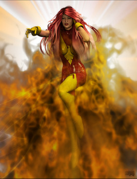 Very nicely done and that flame job looks amazingly real. I love her pose and expression like she is waiting for someone to start something. Your facial detail with her is amazing again and I love the hair stranding and coloring. It looks absolutely realistic. Nice job with the lighting and texturing for her costume and detail in her gorgeous green eyes.