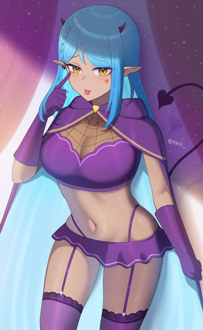 #gamergirl #hair #horns #longhair #purple #succubus #tail #tanned #tanskin #thong #longgloves #thighhighs #thighhighstockings