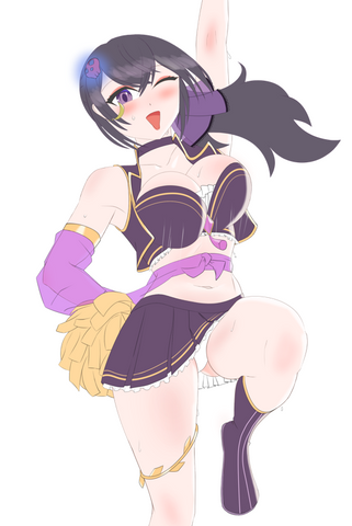 #miniskirt #pantyshot #pinup #purplehair #cheerleader #pompom #cheerleaderoutfit
