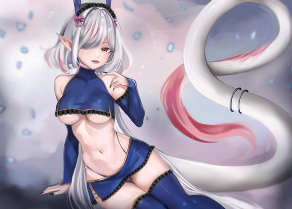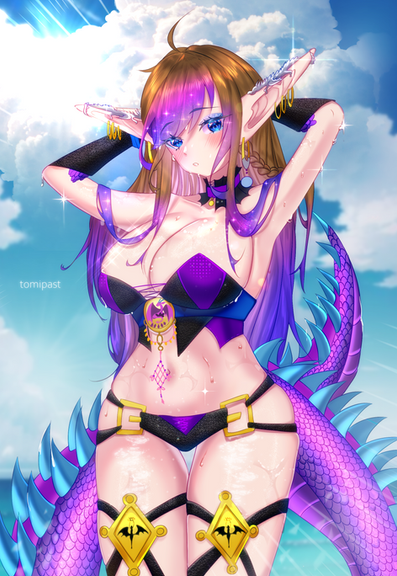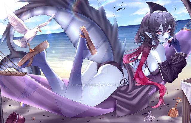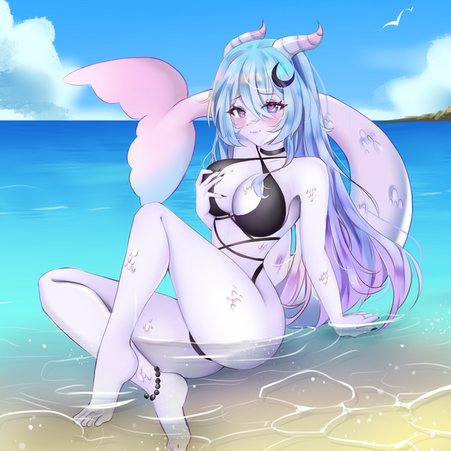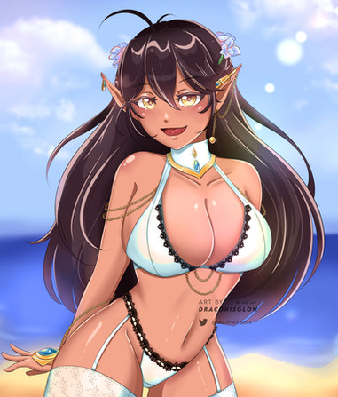 #bikini #dragongirl #tanned #monstergirl #whitehairgirl #darkskinnedgirl